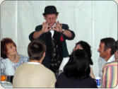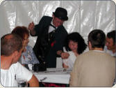 Ist einmal kein Tisch da, so geht Mr. Christelli von Gruppe zu Gruppe und zaubert spontan. Dabei einsteht im kleinen Kreise große Stimmung!