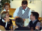 Natürlich braucht kein Gast Angst um seinen guten Anzug haben, Spaßkellner Hansi bringt das Eis mit viel Humor und feinem Wortwitz, aber ohne "Scherben" zum Schmelzen.